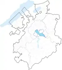 Carte du bailliage d'Illens (bleu ciel). Le bailliage d'Illens est issu du découpage de la seigneurie d'Arconciel (bleu foncé).
