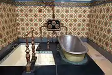 Le rez-de-chaussée abritait les bains impériaux destinés à l'empereur François-Joseph. Il y a une cour couverte dans l'enceinte extérieure. Autour se trouvaient des espaces spa individuels[2].