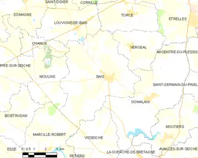 Bais [bɛ] est une commune française située dans le département d'Ille-et-Vilaine en région Bretagne, peuplée de 2 488 habitants[Note 1] (les Baiséens).