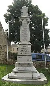 Le monument aux morts de Bais porte les noms de 113 soldats morts pour la France pendant la Première Guerre mondiale. Parmi eux, 18 ont reçu à la fois la Médaille militaire et la Croix de guerre et 7 la Croix de guerre ; 13 sont morts en Belgique, deux dans les Balkans (un en Grèce, Paul Hervagault, un en Serbie, Jean Gallier) dans le cadre de l'Expédition de Salonique et un (Jean Jenuit) alors qu'il était prisonnier en Allemagne ; les autres sont décédés sur le sol français[31].