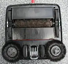 Un balai mécanique se compose généralement d'une petite boîte. La base de la boîte a des rouleaux et des brosses, reliés par une courroie ou des engrenages. Il y a aussi un conteneur pour la saleté. La disposition est telle que, lorsqu'ils sont poussés sur un sol, les rouleaux tournent et forcent les brosses à tourner. Les brosses balayent la saleté et la poussière du sol dans le conteneur. Les balayeuses à tapis ont souvent un réglage en hauteur qui leur permet de travailler sur différentes longueurs de tapis ou de sols nus. La balayeuse a généralement un long manche pour pouvoir la pousser sans se pencher[1].