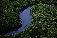 Un pêcheur navigue sur la rivière Dioyo près de Baliangao. Octobre 2017.