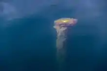 Vieille balise submergée dans un fjord de Lysekil (commune), Suède. Juin 2020.