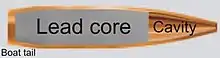 - Une cavité ou un creux dans le nez de balle (balle à pointe creuse) pour décaler le centre de gravité du projectile vers l'arrière