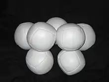 - des sacs à grains : en cuir ou en tissu, remplis de graines ou copeaux de plastique (remplis partiellement pour la jonglerie dans les nombres) ;