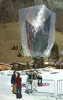 L'enveloppe du ballon est un film fin de polyéthylène noir ou transparent qui capte la chaleur des rayonnements solaire (rayons infrarouge) ce qui a pour effet de réchauffer l'air dans le ballon.
