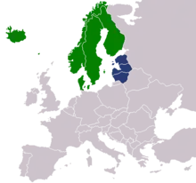 NB8 - États baltes et nordiques. N pour Nordique, B pour Balte et 8 pour le nombre de pays concernés (Estonie, Lituanie, Lettonie, Islande, Norvège, Danemark, Finlande et Suède)