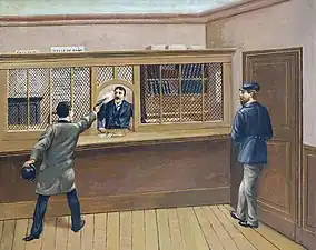 La deuxième arrestation fut celle d'Édouard Carouy, qui vendait de faux bijoux sur les marchés et qui habitait chez Dettwiller. On le suivit, vers les quatre heures de l'après-midi, à la gare de Lozère, au moment où il prenait un billet. Ce fut encore Louis François Jouin[10],[11] qui l'arrêta. Il le pistait, depuis le matin, dans la banlieue, du côté de Choisy-le-Roi. Mais cette opération fut plus difficile car on savait Carouy doué d'une force peu ordinaire et capable de résistance. Le sous-brigadier Rohr s'approcha de lui et, d'un violent coup de poing sur la nuque le jeta à terre. Les autres lui saisirent les bras. En un clin d'œil, Carouy, ahuri, ne sachant ce qui lui arrivait, fut ligoté.