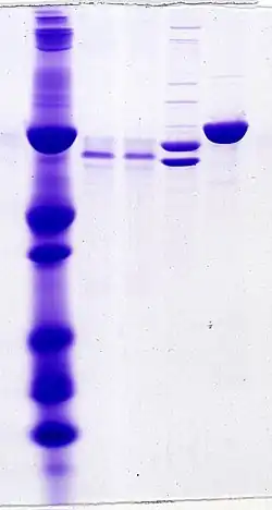 - l'électrophorèse des protéines, une méthode d'analyse de la composition des fluides, également appelée « électrophorèse sur gel d'agarose » ou « coloration au bleu de Coomassie » ;
