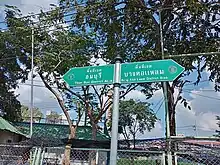 Panneau à l'entrée du pont de Krungthep signalant à gauche le khet de Thon Buri et à droite le khet de Bang Kho Laem