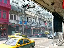 - Charoen Krung (thaï : ถนน เจริญกรุง ; "New Road") et ses "compartiments chinois" (shophouses), bâtiments de deux, trois ou quatre niveaux avec boutique sur la rue, entrepôt et séjour à l'arrière et appartements dans les étages supérieurs[1]