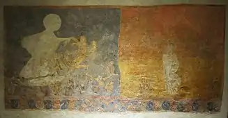 Les fouilles ont révélé que du XIe au XIIIe siècle, le portrait du roi précédent était effacé et remplacé par son successeur, probablement à son décès[20]. D'autres espaces présentent des portraits de rois ou de dignitaires[1]. Quelques peintures à caractère liturgique sont dispersées dans l'ensemble du bâtiment : Jésus Christ et saint Thomas, un saint cavalier, une Vierge à l'enfant, saint Côme et saint Damien et plusieurs figures d'archanges[21].