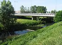 À peine au nord de Poirino, il passe sous la route nationale 29 (it) « du col de Calibone » (dit aussi col d'Altare) (Strada statale 29 del Colle di Cadibona) et reçoit à gauche le Rio Verdev.