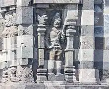 Les escaliers et le portail du temple sont ornés du typique style de l'époque Kala dans la mythologie Hindoue (Makara), ce qui est commun aux temples anciens du Java central datant de cette période. Ces ornements sont situés sur chacun des côtés des escaliers et la tête de Kala est localisée, à elle, au-dessus des portails. Les niches qui entourent la structure principale du temple sont, à eux, ornés d'images de Bodhisattvas, tandis que les niches sur les fenêtres sont à elles ornés avec des images de Tara (bouddhisme) avec chaque main tenant des fleurs. Le mur intérieur est décoré d'images d'Hariti entouré par des enfants (certaines parties de ce relief sont manquantes) et de Vaisravana. Ce mur intérieur est aussi orné d'une figure masculine chauve sous un parapluie étant tenu par des servants upheld by servants, ce qui fait penser qu'il pourrais possiblement représenter un des patrons du temple.