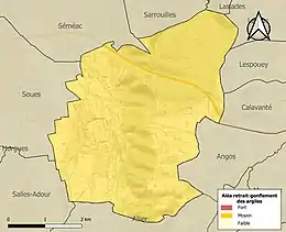 Le retrait-gonflement des sols argileux est susceptible d'engendrer des dommages importants aux bâtiments en cas d’alternance de périodes de sécheresse et de pluie. La totalité de la commune est en aléa moyen ou fort (44,5 % au niveau départemental et 48,5 % au niveau national). Sur les 1 463 bâtiments dénombrés sur la commune en 2019, 1 463 sont en aléa moyen ou fort, soit 100 %, à comparer aux 75 % au niveau départemental et 54 % au niveau national. Une cartographie de l'exposition du territoire national au retrait gonflement des sols argileux est disponible sur le site du BRGM[20],[Carte 3].
