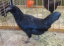 C'est une volaille légère de type fermier, de position moyenne, au port légèrement relevé, avec sur les oreillons et les barbillons une barbe et des favoris.
