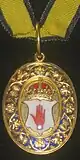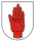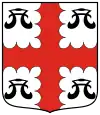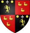 | Supports | À dextre, un faucon essorant d'argent bénit et membré d'or ; À sénestre, une levrette au naturel colletée de gueules bouclée d'or. |