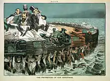Le président Theodore Roosevelt est intervenu contre les monopoles en obtenant du gouvernement conservateur qu'il mette au pas ces capitaines d'industrie, qu'il appelle des « malfaiteurs de grande fortune » et des « royalistes de l'économie »[1].
