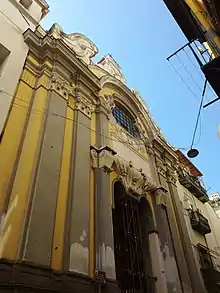 Lors des restaurations de la fin du XVIIIe siècle[7] est apparue l'exigence de décorer les portails et les structures avec du stuc qui accentue la décoration plastique de la devanture, comme dans l'église Santa Teresa a Chiaia, en supprimant en même temps tous les chromatismes du piperno.
