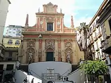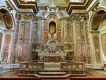 Le baroque napolitain est une forme artistique et architecturale qui se développe au XVIIe siècle et dans la première moitié du XVIIIe siècle à Naples. Il est reconnaissable à ses décorations flamboyantes de marbre et de stuc, caractéristiques des structures du bâtiment. En particulier, le baroque napolitain s'épanouit au milieu du XVIIe siècle avec les œuvres de plusieurs architectes locaux hautement qualifiés et se termine au milieu du siècle suivant, avec l'arrivée des architectes néoclassiques.