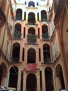 Des cours de petite taille se trouvent dans les extensions urbaines planifiées, comme dans le Quartieri Spagnoli, où a été adopté, dans le cadre de l'aménagement territorial, une module repris par de nombreux bâtiments des quartiers Avvocata et Montecalvario, sauf dans la zone de Tarsia et Toledo, où le bloc assume des caractéristiques plus monumentales.