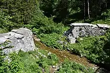- Panneau d'information jouxtant les vestiges de l'ancien barrage-écluse de la Joux Verte.