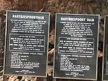 Le nom du barrage signifie « Porte des hartbees » (hartbees ou hartebees étant le nom en afrikaans d'une espèce d'antilope sud-africaine).