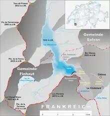À sa construction, le barrage de Barberine a bloqué le cours du torrent de Barberine en amont d'Émosson.