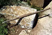 - Barre à mine découverte au bois de Lirate à Vals-près-le-Puy (Haute-Loire) (ancienne barre à mine forgée, de section carrée et à bout pointu)