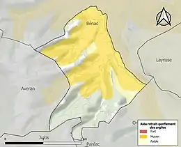 Le retrait-gonflement des sols argileux est susceptible d'engendrer des dommages importants aux bâtiments en cas d’alternance de périodes de sécheresse et de pluie. 57,7 % de la superficie communale est en aléa moyen ou fort (44,5 % au niveau départemental et 48,5 % au niveau national). Sur les 55 bâtiments dénombrés sur la commune en 2019, 53 sont en aléa moyen ou fort, soit 96 %, à comparer aux 75 % au niveau départemental et 54 % au niveau national. Une cartographie de l'exposition du territoire national au retrait gonflement des sols argileux est disponible sur le site du BRGM[22],[Carte 3].