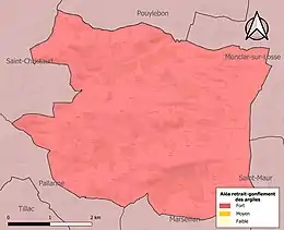 Le retrait-gonflement des sols argileux est susceptible d'engendrer des dommages importants aux bâtiments en cas d’alternance de périodes de sécheresse et de pluie. La totalité de la commune est en aléa moyen ou fort (94,5 % au niveau départemental et 48,5 % au niveau national). Sur les 70 bâtiments dénombrés sur la commune en 2019, 70 sont en aléa moyen ou fort, soit 100 %, à comparer aux 93 % au niveau départemental et 54 % au niveau national. Une cartographie de l'exposition du territoire national au retrait gonflement des sols argileux est disponible sur le site du BRGM[20],[Carte 3].