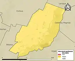 Le retrait-gonflement des sols argileux est susceptible d'engendrer des dommages importants aux bâtiments en cas d’alternance de périodes de sécheresse et de pluie. La totalité de la commune est en aléa moyen ou fort (44,5 % au niveau départemental et 48,5 % au niveau national). Sur les 9 bâtiments dénombrés sur la commune en 2019, 9 sont en aléa moyen ou fort, soit 100 %, à comparer aux 75 % au niveau départemental et 54 % au niveau national. Une cartographie de l'exposition du territoire national au retrait gonflement des sols argileux est disponible sur le site du BRGM[21],[Carte 3].
