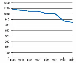 En 2002, l'âge moyen de la population était de 42,9 ans pour les hommes et 45,1 ans pour les femmes[3].