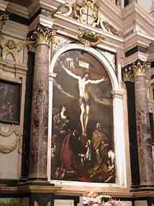 L'autel avec le retable en marbre a été érigé par la municipalité de Reggio sur un projet grandiose de G.B. Magnani. Le retable représentant la Crucifixion avec Jésus consolé par l'ange est l'une des œuvres les plus admirées et discutées (1624) de Francesco Barbieri dit Le Guerchin, qui pour cette œuvre « au-dessus du prix fixé de 500 ducatoni, lui donna un collier en or avec un médaille monétaire de seulement cent lires avec la Madone de Reggio et l'arme de la ville »[8].