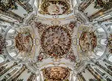 La première pierre est posée en 1737 par l'abbé Rupert II. À sa mort en 1740, la direction des travaux change plusieurs fois. Elle est confiée en 1748 à l'architecte munichois Johann Michael Fischer qui termine le bâtiment en 1753 avec la pose de la charpente du toit.