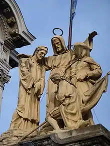 La façade est rénovée entre 1907 et 1911 par l'architecte allemand Ernest Sackmann, en s'inspirant du baroque bavarois. En 1910, l'artiste autrichien Anton Vögele a sculpté les quatre figures qui forment le groupe sculpté sur le haut de la façade. Il représente saint François flanqué de Dante Alighieri, du peintre Giotto et, s'agenouillant devant lui, Christophe Colomb. La raison en est que ces trois personnages étaient membres du Tiers ordre franciscain.