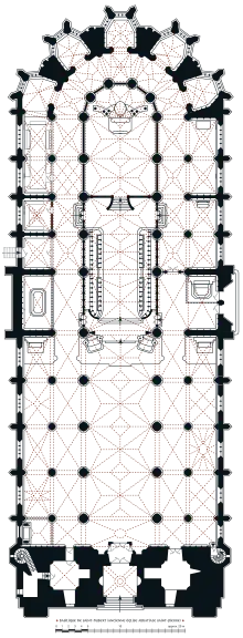 • distance entre les piliers du vaisseau central du chœur : 4,20 m (dernière travée avant l'abside : 4,60 m);