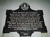 En 1621, don Bernardino Castillo, un généreux mécène et un dévot du martyr romain saint Sébastien, fait don du terrain sur lequel l'église est bâtie. La première église, construite en bois, brûle en 1651 lors d'une rébellion chinoise à Manille. Reconstruite une première fois en briques, la deuxième église et celles qui lui succéderont seront détruites par le feu ou les tremblements de terre de 1859, 1863 et 1880.