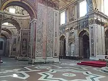 Les anges porteurs de torche du maître-autel sont l'œuvre du sculpteur Angelo Viva, disciple de Sanmartino. On distingue deux toiles de Giuseppe Marullo, La Conversion de saint Paul et L'Annonciation.