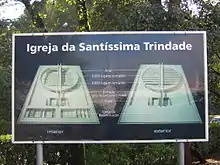 Pendant les deux premières années de construction, l'église de la Sainte-Trinité a été désignée GECA, pour Grande Espaço Coberto para Assembleias (Grand Espace Couvert pour les Assemblées), en raison de son importance relative[6],[7] (le bâtiment circulaire fait 125 m de diamètre).