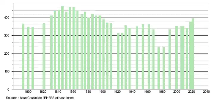 Au dernier recensement de 2021, la commune comptait 395 habitants.