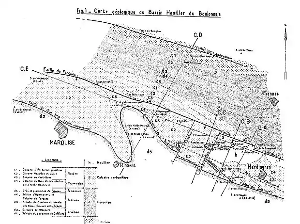 Le Boulonnais, et particulièrement la partie que l'on appelle le bassin d'Hardinghen, est exploré par un très grand nombre de puits et de sondages depuis le XVIIe siècle. La légende dit que le charbon y fut découvert vers 1660 parce qu'il se trouvait, par endroits, à fleur de sol. Malheureusement, son exploitation se fit de manière anarchique.