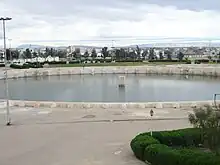 L'ouvrage, réalisé en moellons recouverts d'un enduit étanche, couvrant une superficie de 11 000 m2, est constitué d'un petit bassin de décantation, d'un grand bassin pour l'emmagasinage des eaux et de deux citernes de puisage, le tout ayant une capacité totale de stockage de 68 800 m3[2].