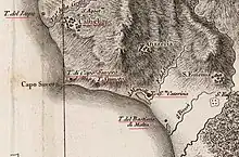 La structure était située près du littoral, mais elle se trouve aujourd'hui plus loin, à environ 800 m du rivage, en raison des processus de sédimentation alluviale et des tentatives de reconquête d'une vaste zone marécageuse entreprises au XXe siècle, en gardant un débarcadère fluvial à l'embouchure de l'Angitola.