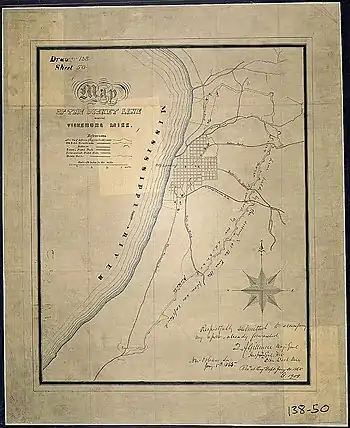 La ville était naturellement défendue, à tel point qu'elle était surnommée « la Gibraltar de la Confédération ». Située sur une haute falaise, Vicksburg surplombe en effet un méandre en fer à cheval qui enserre la péninsule De Soto et rend impossible toute attaque par voie fluviale. Au nord et à l'est de la ville s'étendait alors le « Mississippi Delta » (également connu sous le nom de « Yazoo Delta »), une zone couvrant 320 km du nord au sud et 80 km d'ouest en est, décrite par le géographe Warren E. Grabau comme « un réseau étonnamment complexe de voies d'eau interconnectées », dont certaines étaient suffisamment larges et profondes pour laisser passer des vapeurs de petit gabarit. Les zones situées entre les rivières et les bayous formaient des bassins fermés, baptisés « backswamps » (marécages), que Grabau décrivait ainsi : « Qu'ils soient ou non inondés en permanence, ces marécages étaient, à tous points de vue, des étendues sauvages, inaccessibles à un homme à cheval comme à tout véhicule à roues, et très difficiles d'accès même pour un homme à pied »[2]. À une vingtaine de kilomètres en aval, à Haynes Bluff, sur la Yazoo River, se trouvaient des batteries et des fortifications confédérées.