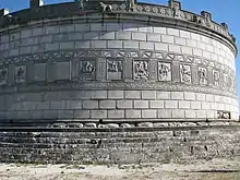 Le monument de Trajan, inspiré du mausolée d'Auguste, est dédié au dieu Mars Ultor (Vengeur). L'inscription est préservée de manière fragmentaire des deux côtés du trophée hexagonal, et reconstituée comme suit[14] :