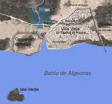 La flotte musulmane rassemblée à Tanger, lève l'ancre le , et atteint Gibraltar, ville contrôlée par les Mérinides[L 9]. Le lendemain, après s'être suffisamment approchée sans être repérée de la baie d'Algésiras, la flotte musulmane réussit à entrer dans la cité d'Algésiras au travers des chantiers navals. Les Marocains font alors une sortie depuis les portes d'Algésiras[5], et attaquent les barques de Castille à l'ancre et quasi vides de l'Isla Verde. L'escadre chrétienne est rapidement capturée et incendiée[6]. Les soldats castillans à terre, découragés par la longueur du siège, mal payés et malades[L 8], sont surpris par la rapidité de l'attaque, et n'ont pas le temps de réagir[5].