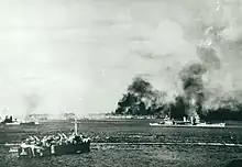 Les bombardements de l'île par le cuirassé USS Tennessee, puis par les bombardiers en piqué Dauntless du porte-avions USS Wasp commencèrent le . Le , la bataille de Peleliu commençait.