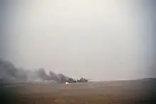 À 18 h 30, plusieurs T-55 et T-72 irakiens lancent une contre-attaque. Malgré leur supériorité numérique, ils sont mis hors de combat par les obusiers américains et les AH-64 Apache de l'US Army Aviation.