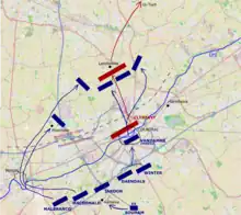 Sur ordre de Pichegru, Souham, qui s'est replié sur Aalbeke en fin de journée après la bataille de Willems, retourne sa division vers Courtrai[12]. Le 11 mai, Souham envoie les brigades Daendels et Winter renforcer Vandamme à Courtrai[13]. Pendant ce temps, Souham ordonne aux brigades Macdonald et Malbrancq de traverser la Lys à Menin, et de se diriger vers le nord-est contre Clerfayt[12].